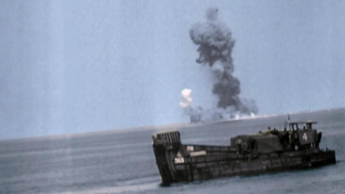 登陆德拉姆堡的美军将汽油和TNT炸药全部灌进了德拉姆堡内部,然后一把大火点燃了汽油。