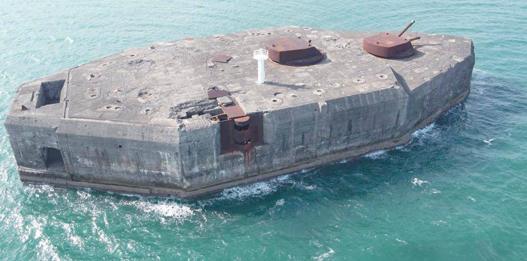 它长110米,宽约44米,整艘“军舰”最高处距离平均低潮位12米左右。