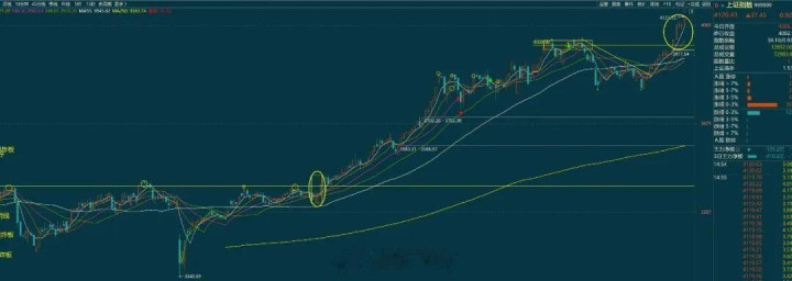 如图黄圈的位置,去年6月末是用3根大阳线突破3430附近的压力,这个压力也是好几次都突破不过去,这次呢创牛配资,用3根大阳线突破4000点整数压力。